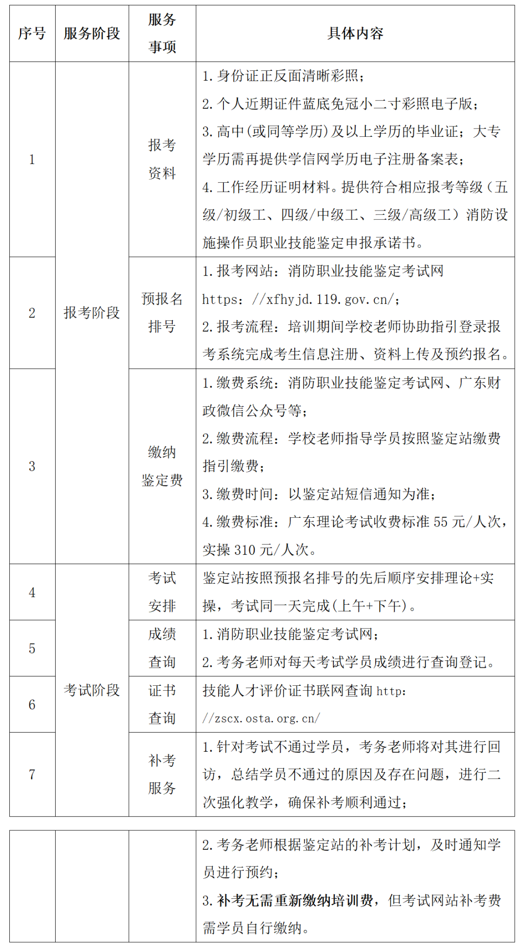 根据2019年6月26日消防救援局发布关于贯彻实施国家职业技能标准《消防设施操作员》的通知,从2020年1月1日起:监控、操作设有联动控制设备的消防控制室和从事消防设施检测维修保养的人员,应持中级(四级)及以上等级证书。根据广东省公安厅209号《关于加强和规范消防控制室管理的通知》规定,消防控制室必须实行每日24小时专人值班制度,每班不应少于2人。目前绝大多数消防控制室都以联动型控制器为主,监控、操作人员都应持中级(含)以上证书上岗。 为适应物业服务行业发展需求,全面提升我市物业企业员工职业综合素质,经向部分会员单位、物业服务企业了解,普遍存在岗位持证人员缺口大、人员培训成本较高、考试排队周期长、取证难等问题,协会本着为会员单位提供便利与优惠的原则,邀请我会会员单位广东省育安消防职业培训学校在全市举办中级消防设施操作员培训班,现就相关事项通知如下: 我会为会员企业全年度每月上下旬各开一期培训班,各单位可根据开班时间表(见附件1)选择任意一期到校培训5天,具体每月开班时间以培训学校公众号公布为准。 第一阶段:5天,根据培训学校开班时间表,企业组织学员到校进行第一阶段综合培训。第一阶段课程结束后颁发结业证书。 第二阶段:线上学习,通过育安线上学习系统,看视频教学,刷题练习。 第三阶段:2天,国家考试时间确定之后,培训学校向企业发出短信通知,按照书面通知约定的时间组织学员进行考前冲刺培训。