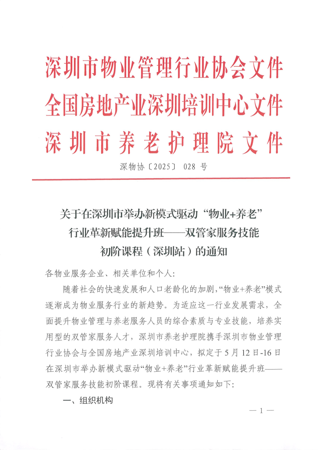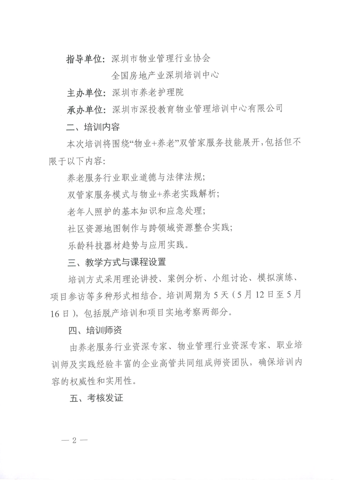 关于在深圳市举办新模式驱动“物业+养老”行业革新赋能提升班——双管家服务技能初阶课程(深圳站)的通知
