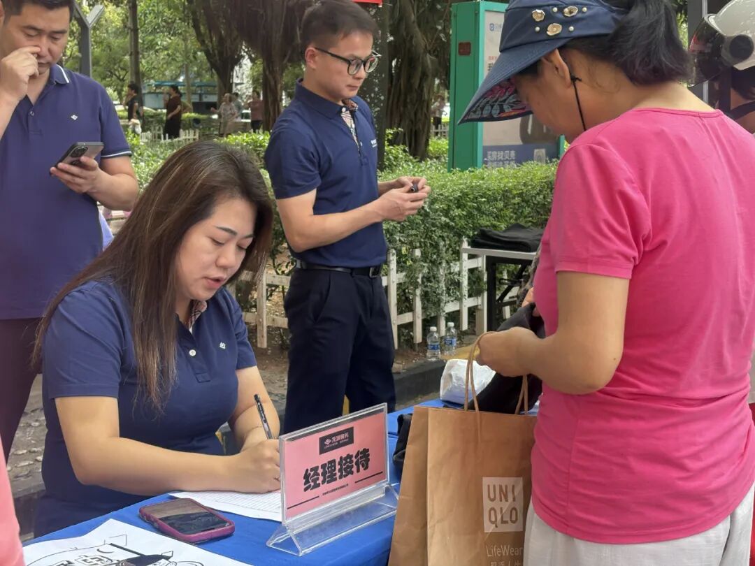 在深圳罗湖海关生活区项目,项目团队联动和平社区党群服务中心、和平社区居委会及多家共建单位,打造“微光服务贴心相伴”便民服务活动。活动现场精准对接居民需求,设置健康管理、民生服务、智慧生活三大服务版块:一是健康守护站,集结心内科、口腔、眼科医疗团队,提供专业问诊与个性化健康指导;二是安居服务区,融合反诈科普、政策解读、义剪磨刀等民生项目,筑牢社区安全防线;三是品质生活圈,通过高尔夫趣味体验、亲子手工创作等特色活动,营造睦邻友好氛围。