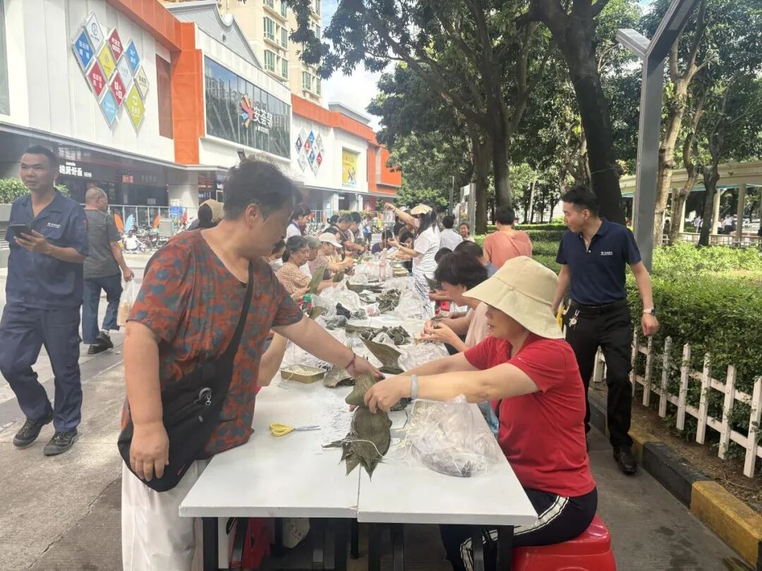 深圳桃源村项目紧扣端午佳节,在商业街举办端午包粽子及便民活动。现场备齐粽叶、糯米等材料,业主们娴熟包粽,在欢笑声中拉近邻里距离。同时开展家电维修、磨刀、缝纫等便民服务,切实解决业主生活难题。副经理亲临 “经理接待日”,面对面收集业主建议并即时回应。活动让业主感受传统节日魅力,增进邻里情谊,提升小区归属感,也彰显了物业的贴心服务。