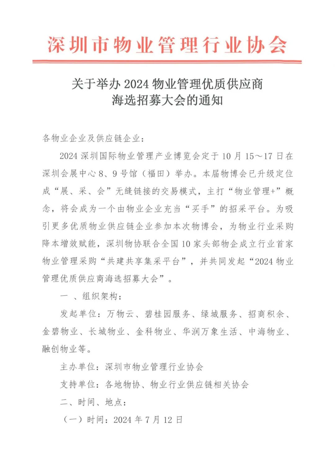 关于举办2024物业管理优质供应商海选招募大会的通知