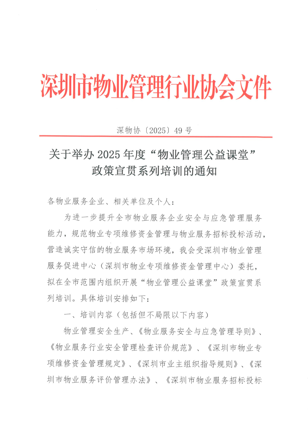 关于举办2025年度“物业管理公益课堂”政策宣贯系列培训的通知