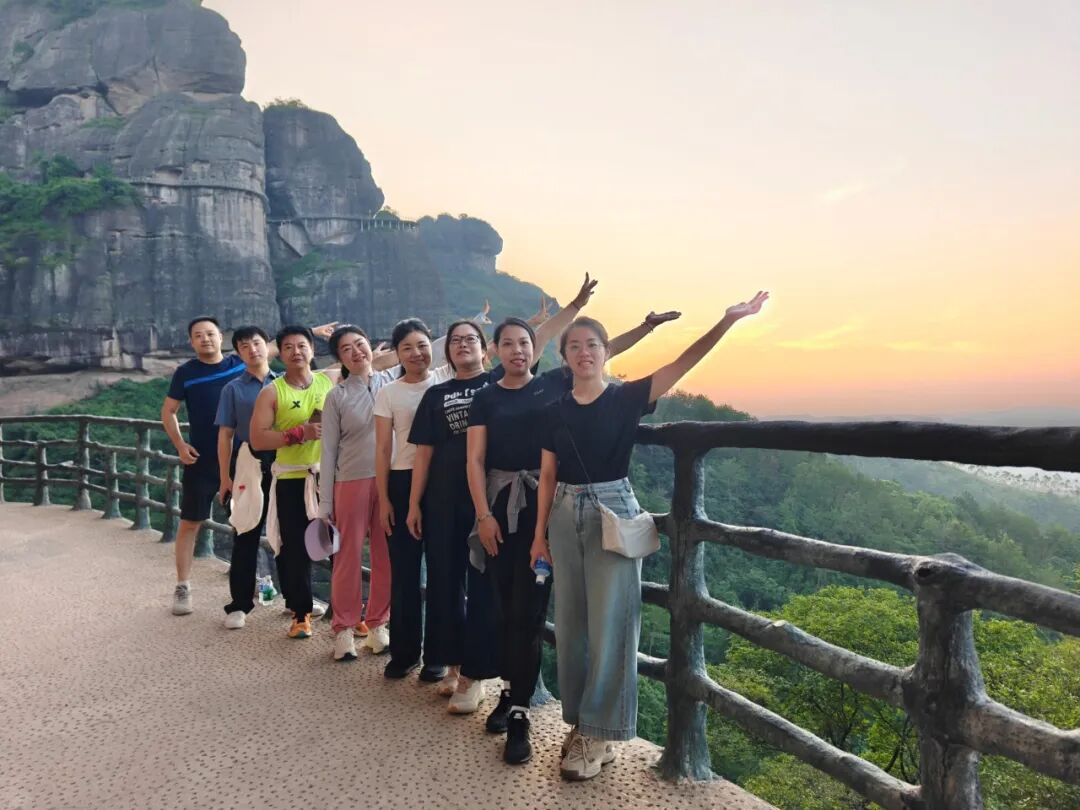 晨曦微露,霍山巍然。当清晨的第一缕阳光尚未完全驱散夜色,一群心怀挑战精神的美鹏人已整装待发,选择迎向霍山的巍峨与崎岖。他们相互激励,拾级而上,晨光熹微中,山道上的每一句鼓励、每一次伸出的援手,都闪耀着协同的温暖光芒。登顶极目,云海初开、山河尽览的壮阔景象,不仅涤荡心胸,更点燃了美鹏人心中“明势已清,提质必成,创新无畏”的万丈豪情。山野间的自由交流,让思想在碰撞中交融,壁垒在笑语中消融,这份勇于挑战、敢为人先的行动力,正是美鹏创新锐气最生动的体现