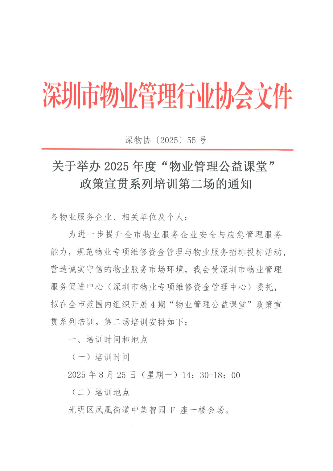 关于举办2025年度“物业管理公益课堂”政策宣贯系列培训第二场的通知