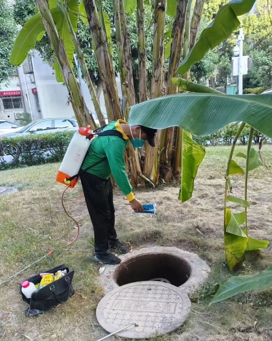 针对难以彻底清除的污水井、低洼积水区等蚊虫孳生高风险点。住宅集团采用环境友好型杀虫颗粒剂,根据水体面积、积水深度及蚊幼虫密度进行科学、精准投放。