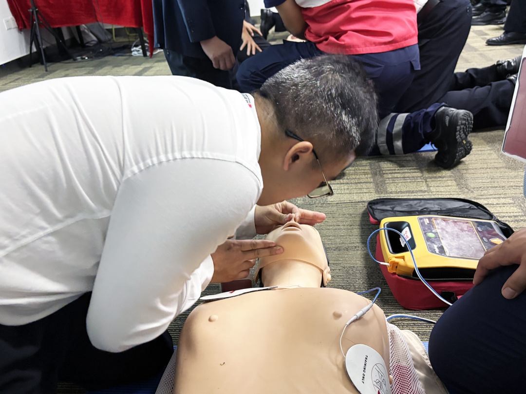 不少同事一边练习一边感慨:“按压真的太累了!”“原来救人不仅需要知识,还要足够的体力!”“才几分钟就满头大汗,医护人员太不容易了……”