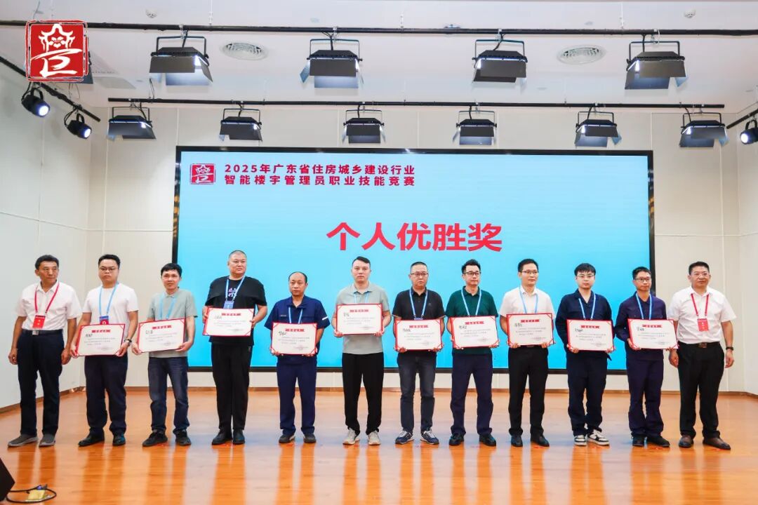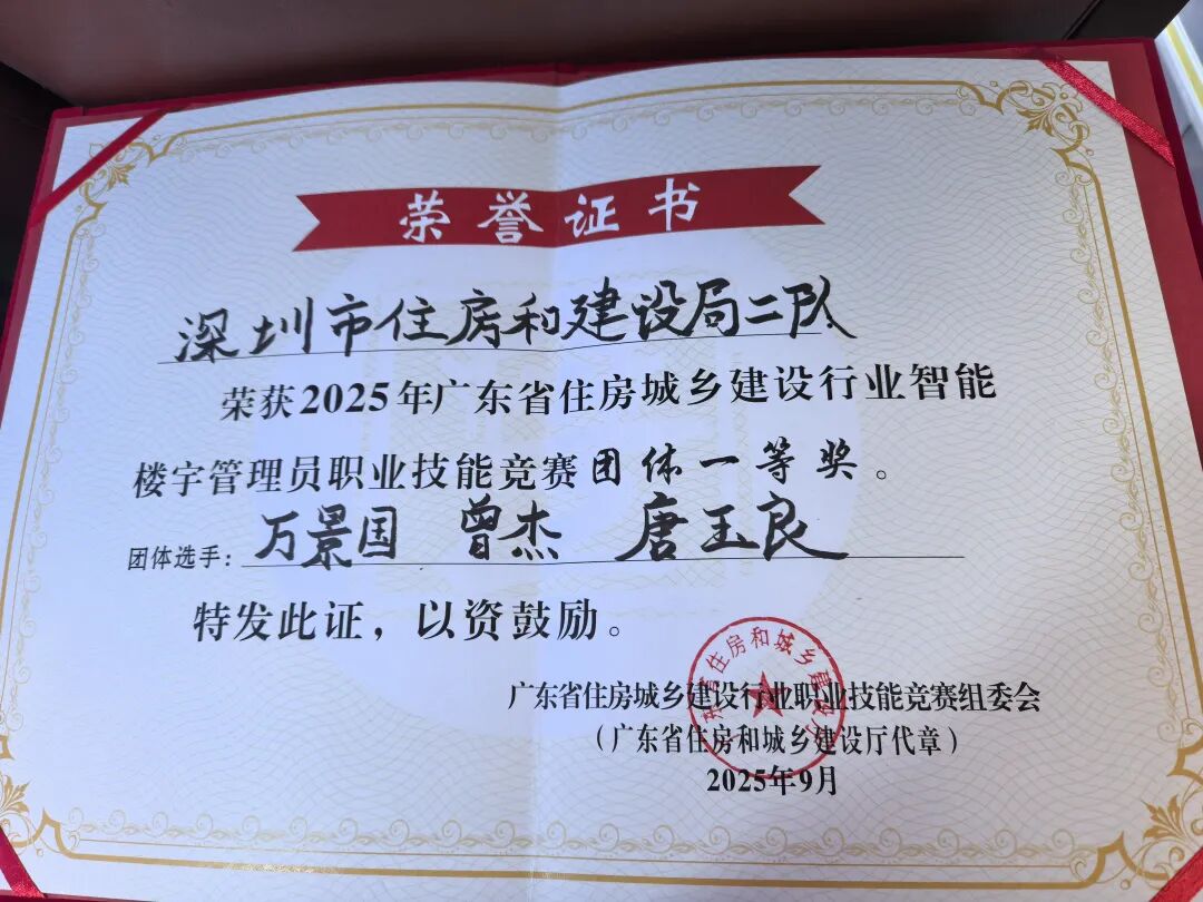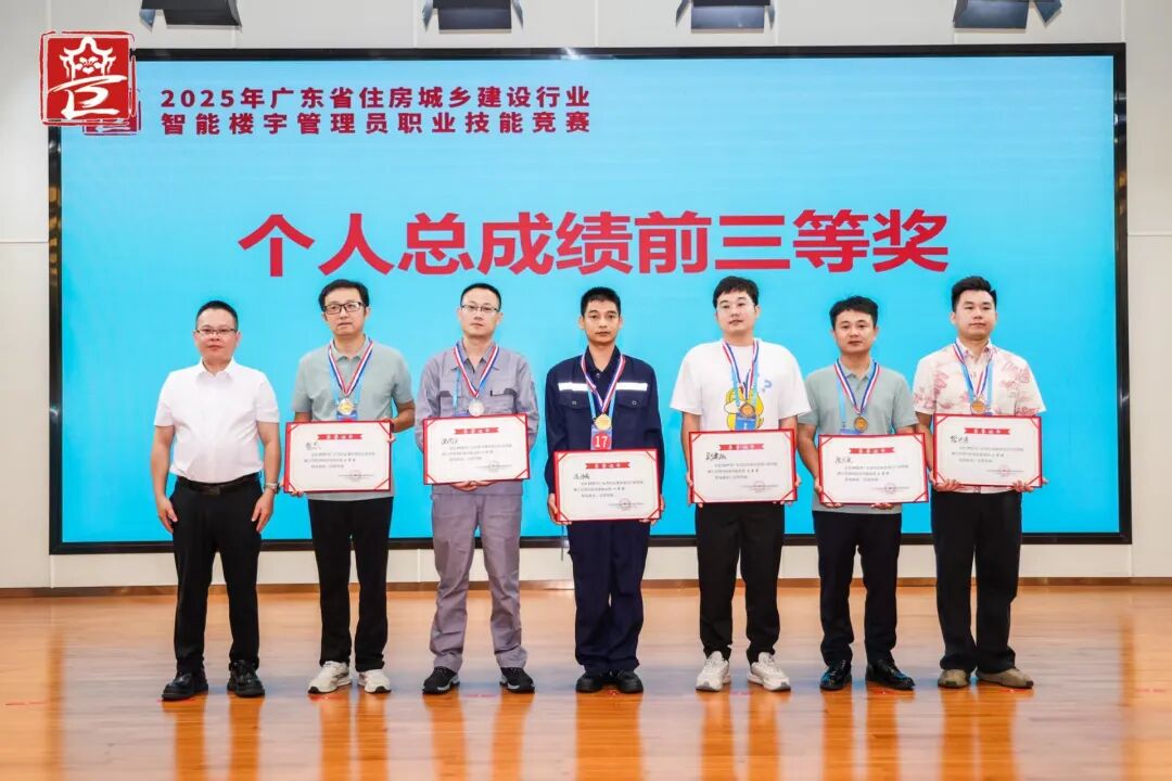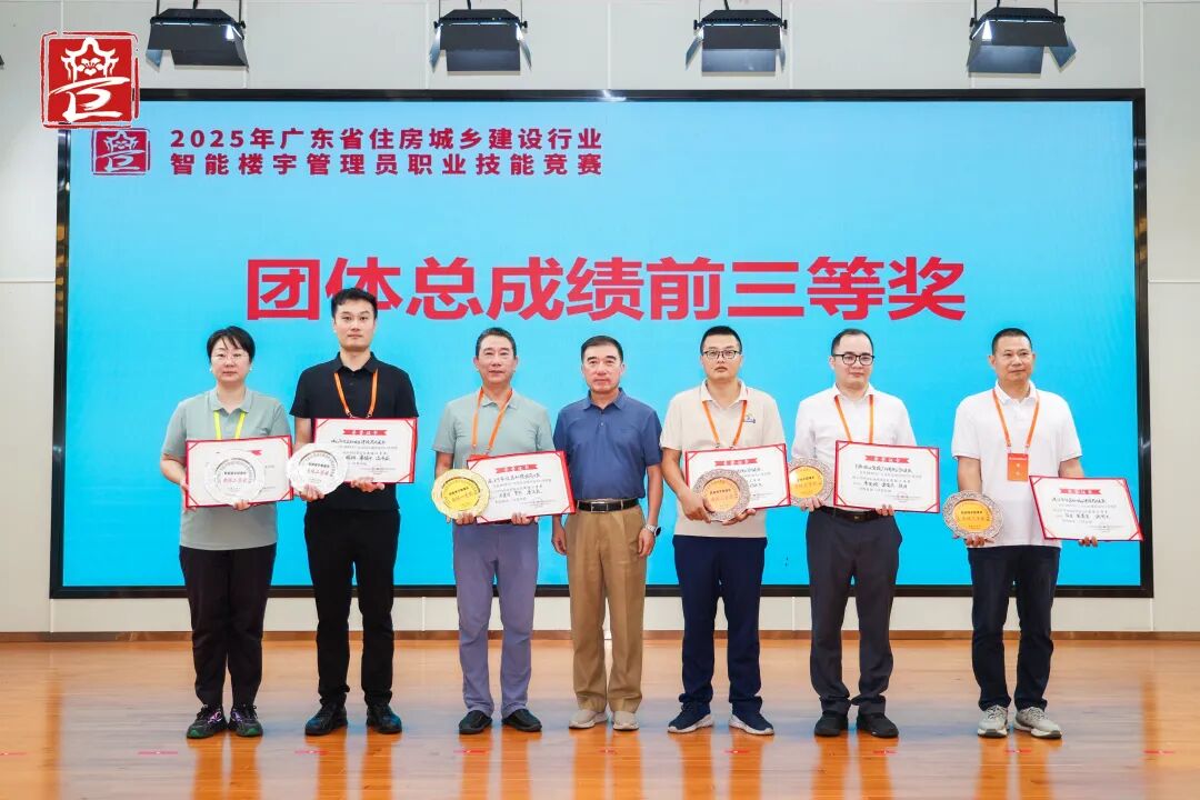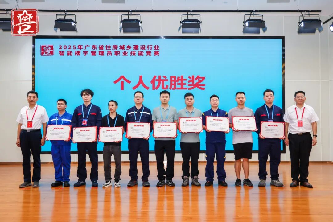 9月16日至18日,2025年广东省住房城乡建设行业智能楼宇管理员职业技能竞赛在清远举行,来自全省的31支代表队共93名选手参加本项比赛。深圳市物业管理服务促进中心副主任刘瀚带领深圳市住房和建设局两支代表队参赛,经过笔试、现场实操层层角逐,分别荣获团体一等奖(冠军)和二等奖。其中,深圳市创世纪科技发展有限公司曾杰、深圳市泰然物业管理服务有限公司唐玉良,以及深圳市励科智慧楼宇科技有限公司刘铁成、陈浩文四名选手个人成绩跻身前十。深圳市励科智慧楼宇科技有限公司罗俊获第27名,明喆集团股份有限公司万景国获第30名。本次参赛的6名选手将获得二级智能楼宇管理员技师等级证书。深圳市物业管理行业协会副会长、深圳市中旅联合物业管理有限公司副总经理范鹏举荣获“优秀技术指导奖”。