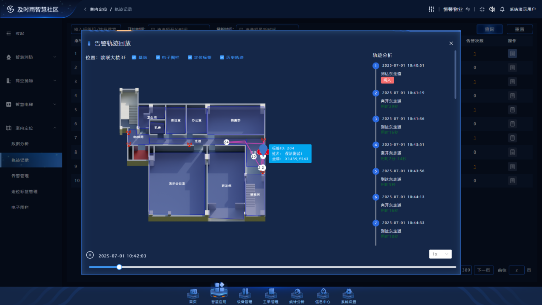 基于低功耗物联专网与蓝牙定位技术,具备广覆盖、高精度、强穿透特点,可实时监控人员位置、设定电子围栏、预警异常行为,并进行轨迹回溯,大幅提升区域安全管理水平。