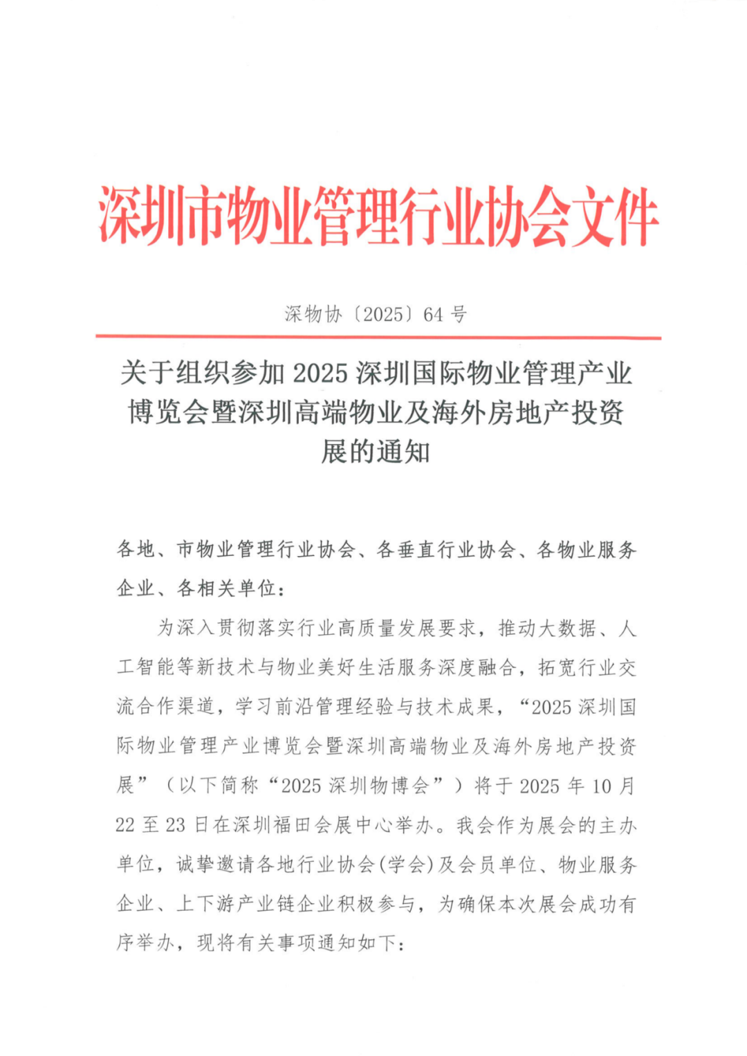 关于组织参加2025深圳国际物业管理产业博览会暨深圳高端物业及海外房地产投资展的通知
