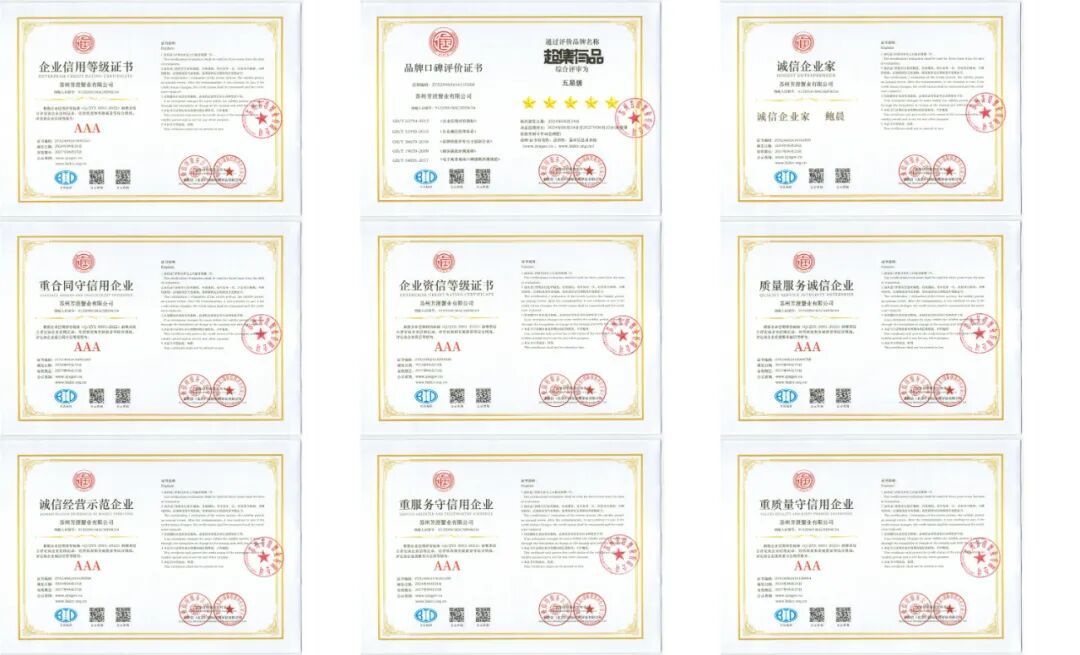企业信用、企业资信、品牌口碑评价优秀,质量服务、诚信经营均获AAA评价。