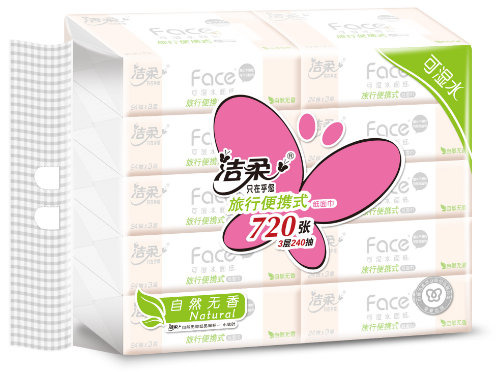 C.便携应急系列:洁柔小方巾,迷你尺寸便于携带,100% 无荧光剂,适配社区活动伴手礼、员工随身福利,单包成本低至 1元。