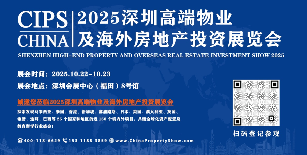 2025年10月22-23日,由深圳市物业管理行业协会主办的2025深圳国际物业管理产业博览会暨深圳高端物业及海外房地产投资展览会将在深圳会展中心(福田)8号馆举办。其中,深圳物协社区增值和供应链专委会和北京泰达展览展示有限公司策划承办的2025深圳高端物业及海外房地产投资展览会,预计迎来中国香港、新加坡、马来西亚、越南、泰国、塞浦路斯、马耳他、土耳其、美国、加拿大、澳大利亚、英国、西班牙、希腊、迪拜、德国、巴西等25个国家和地区的近150个境内外项目参展参会。展出内容丰富,涵盖高端房产、海外置业、身份规划、出国留学、教育游学、出国医疗、企业出海、税务筹划、家办信托、高端物业等板块。展会期间计划还将举办“CIPS海外房地产投资及教育留学大讲堂”活动,分别推出以中国香港、新加坡、马来西亚、美国、希腊、英国等热点国家和地区的多场专题讲座。期待您和家人莅临2025 深圳高端物业及海外房地产投资展览会,相聚鹏城共襄全球化资产配置及留学移民行业盛会!咨询热线:400 118 6629,Mob:153 1188 6629