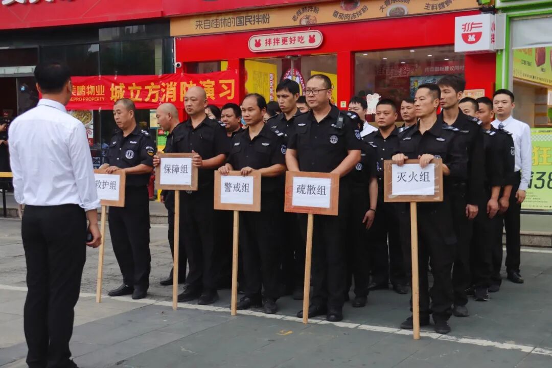 火情发生后,我方巡逻岗人员迅速响应,物业服务中心立即启动应急程序,在3分钟内完成火情确认、上报与初期力量调集。应急小组随即展开标准作业:警戒组迅速封锁现场,疏散组有序引导人员撤离,灭火组第一时间进行初期扑救,全程动作精准、配合默契,充分展现了美鹏物业团队扎实的日常训练功底与应急处置能力。