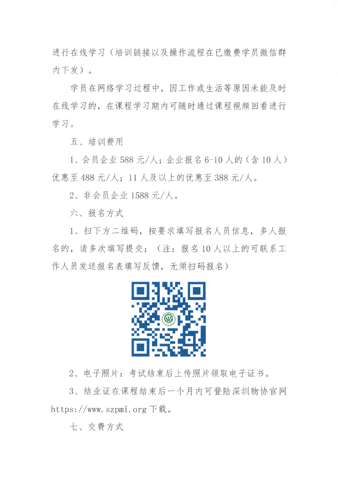 3、结业证在课程结束后一个月内可登陆深圳物协官网https://www.szpmi.org下载。 1、微信付款方式,转账时请备注“深圳-姓名-联系方式”。