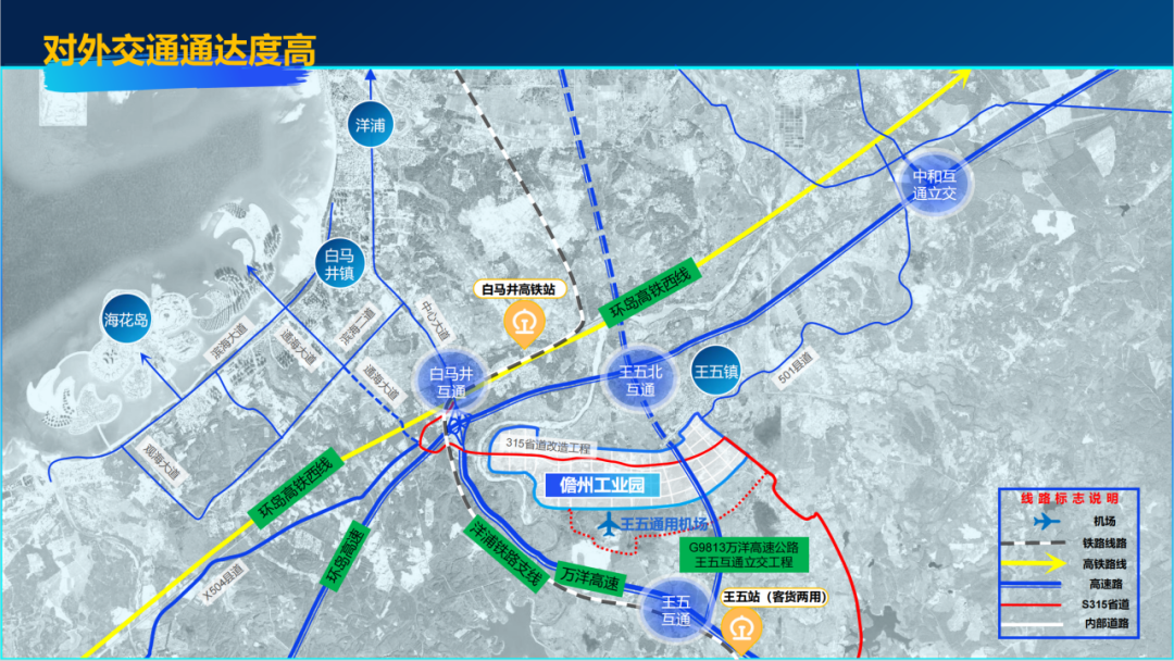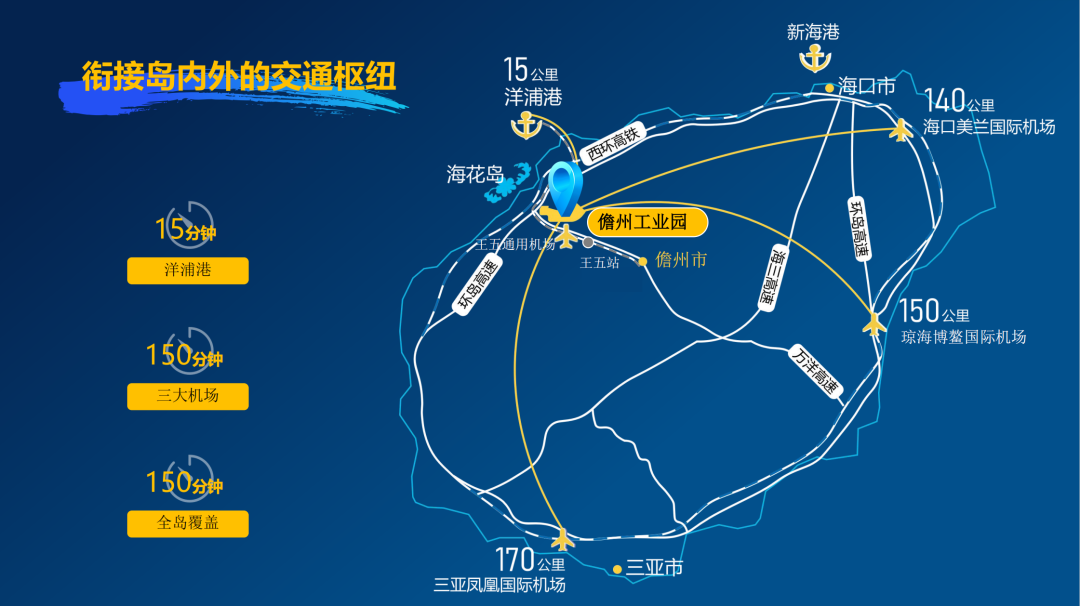 园区毗邻洋浦港这一西部陆海新通道国际枢纽,紧邻1600亿打造的海花岛和13平方公里的配套产业新城,周边两个铁路站,三面高速环绕,独特的区位优势使其天然成为国内国际双循环的交汇点,更是自贸港政策的深度实践区和产业高质量发展的核心承载地。