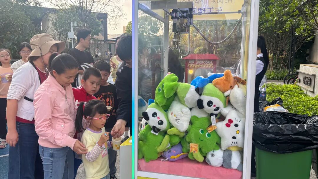 抓娃娃专区吸引了众多小朋友踊跃参与,物业服务中心还免费为大家提供爆米花和饮品。
