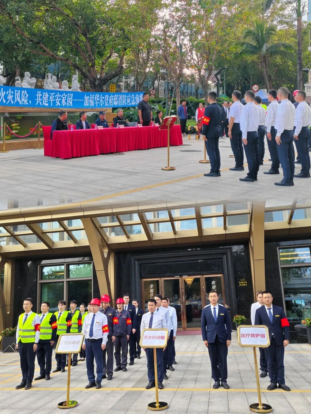为全面提升超高层建筑火灾应急处置能力,切实保障业户生命财产安全,2025年12月24日,在华尔登物业公司的统一部署与现场指导下,深圳区域加福华尔登府邸项目与加福广场项目联合开展了一场高标准、全流程的超高层建筑消防实战演练。福田区安委办、福田区消安办、福田消防大队、福保街道及社区工作站等相关单位领导莅临现场指导,并对演练组织及效果给予高度评价。