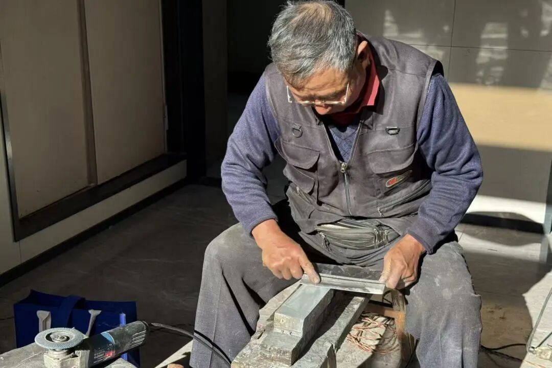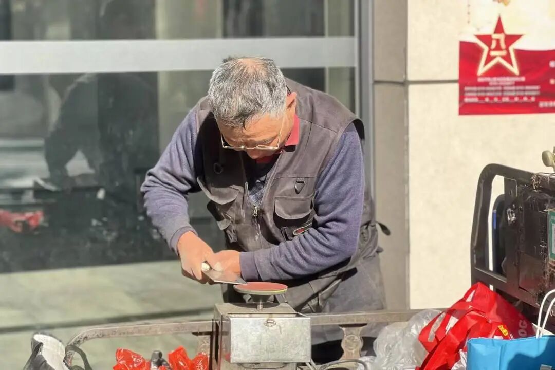 磨刀点位人气高涨,业主们纷纷带来家中钝损的菜刀、剪刀。工作人员持专业工具娴熟打磨开刃,让锈钝刀具重焕锋利,业主们拿到刀具后满心满意。