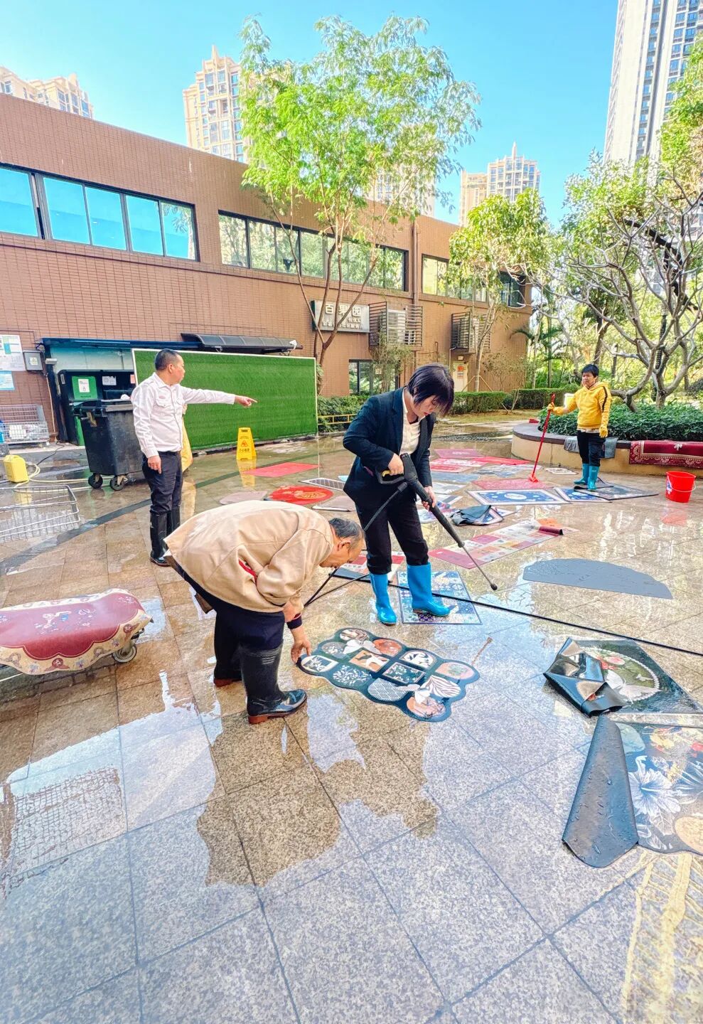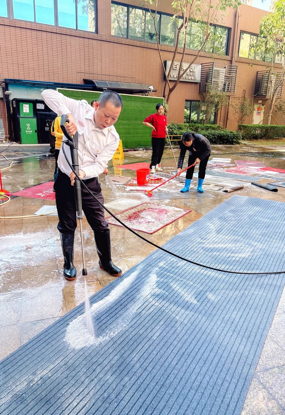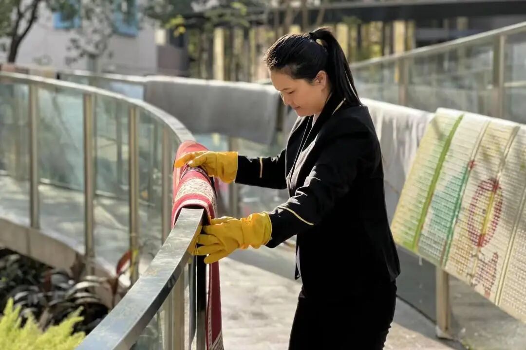 地毯清洗服务同样抢手,业主们带来家中小型地毯。工作人员用专业工具深层清理灰尘、污渍与异味,让脏污地毯重归洁净,切实解决了业主清洁难题。