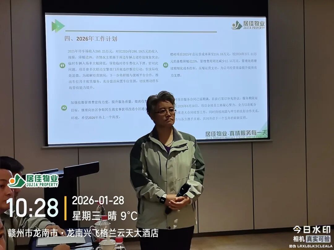 大会第六项,总经理发表重要讲话,对公司2025年度工作进行全面总结与深度剖析。总经理指出,2025年是公司攻坚克难、笃行实干的一年,全体员工凝心聚力、奋勇争先,实现项目续签工作稳步推进,顺利完成道闸智能化改造、人员结构优化、收费标准调整等重点工作,部分员工能打破惯性思维、勇于探索创新,推动公司发展迈出坚实步伐。总经理强调,公司发展既要厚植文化底蕴,也要健全管理制度,在制度框架下彰显人文关怀的温度。在肯定成绩的同时,更要清醒正视发展中的不足,强化风险隐患识别与防控,全体员工要进一步提振干事动力、提升执行效能,以更务实的作风推动各项工作落地见效。