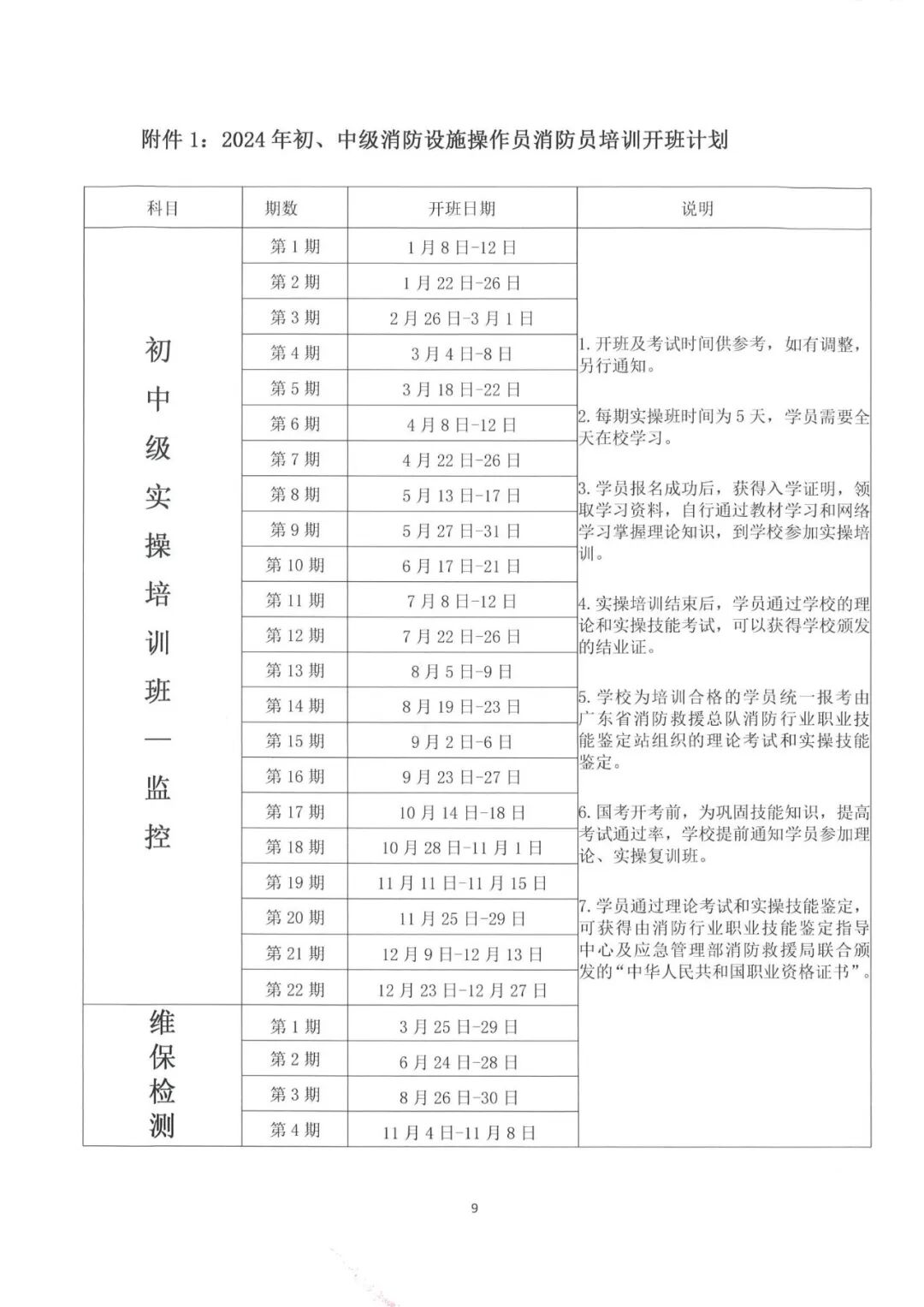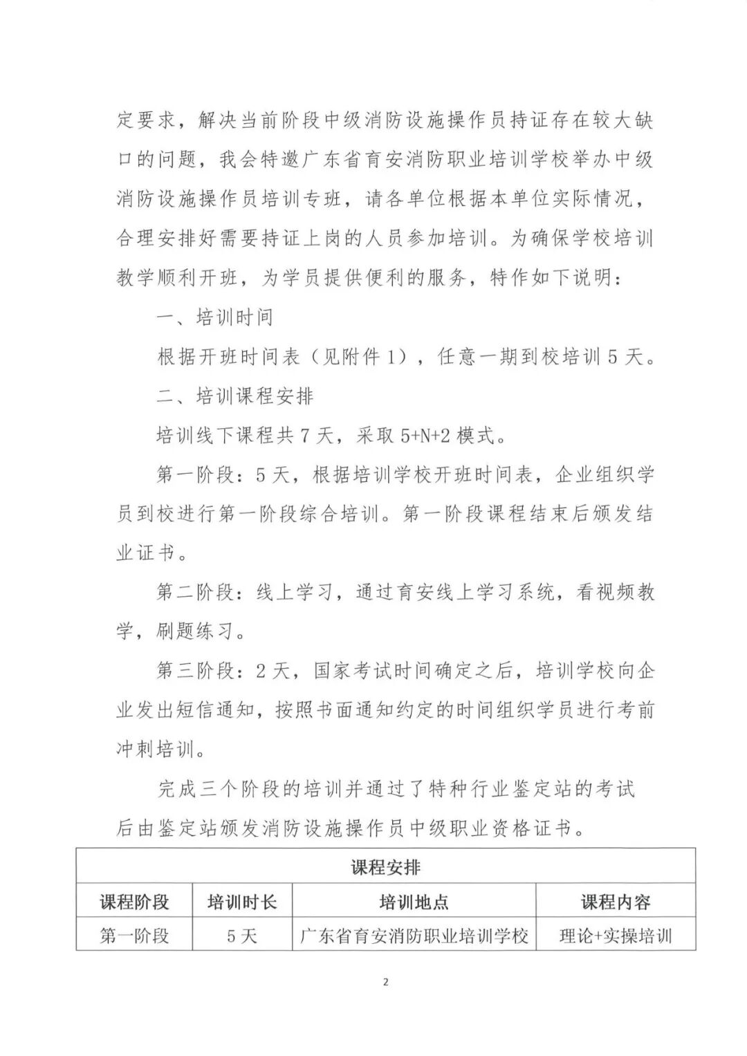 广东省育安消防职业培训学校消防设施操作员(中级)培训通知