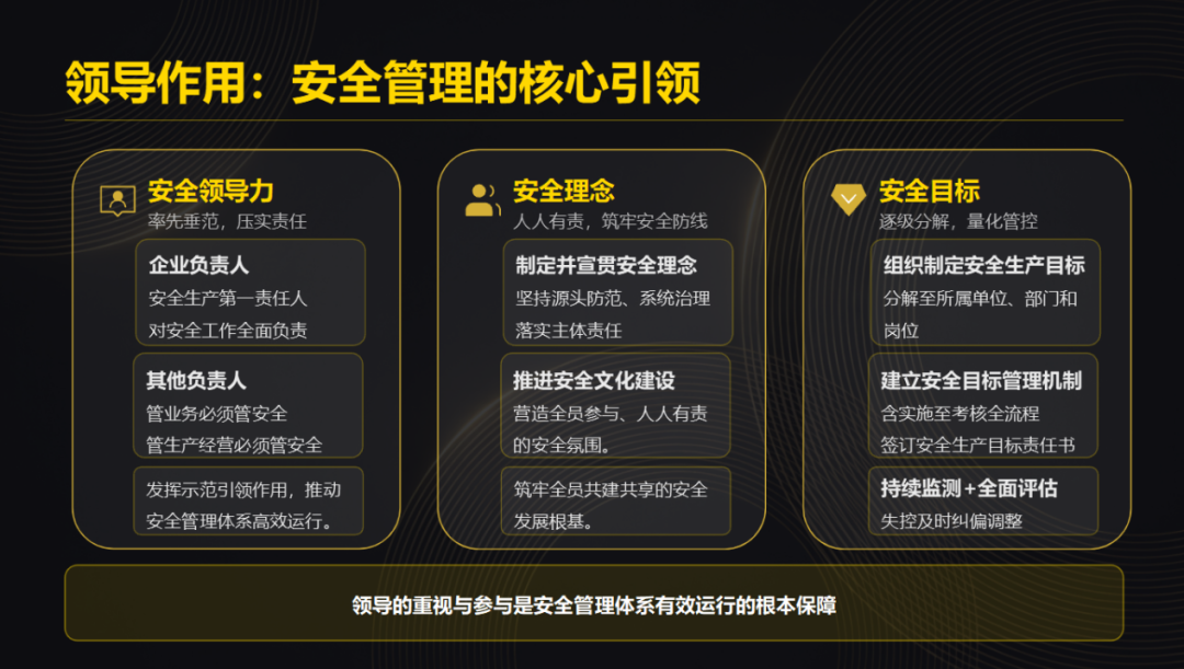 管理要求部分细化为七大核心维度,全方位覆盖安全生产管理关键要点:一是压实领导作用,强化企业负责人第一责任人职责,明确安全发展理念与目标导向;二是夯实基础保障,从组织建设、制度完善、资金投入、宣传教育、科技赋能五大方面,筑牢安全管理坚实根基;三是筑牢双重防线,全面开展安全风险分级管控与事故隐患排查治理,做到防患于未然、防微杜渐;四是严控现场管理,规范公共部位、设施设备、作业安全及职业健康管理,严守一线安全关口;五是完善应急管理,健全应急预案、应急队伍、应急物资、应急演练、应急处置全链条机制,全面提升应急处置能力;六是规范事故管理,严格遵守事故报告、调查、处理全流程要求,做好警示教育与复盘总结;七是建立评审改进机制,定期开展复盘优化,推动安全管理水平持续提升。标准编制始终坚守“安全第一、预防为主、综合治理”的核心方针,秉持依法依规、突出地方特色、系统顶层设计、风险分级管控、开放共治、科技赋能六大核心原则,既严格贴合GB33000-2025《大中型企业安全生产标准化管理体系要求》等国家上位标准的核心要求,借鉴其“领导作用、基础保障、持续改进”等核心要素,又深度适配深圳物业行业管理特性,打造出兼具权威性、针对性、可操作性的行业规范,为企业落地实施提供清晰指引,实现了国标要求与物业行业实操的精准衔接。相较于传统零散的安全管理模式,该标准实现多项突破创新,精准破解行业痛点难点,核心亮点体现在五个方面:一是责任体系全方位升级,实现闭环落实。标准打破以往安全责任模糊、落实不到位的困境,严格参照GB33000-2025《大中型企业安全生产标准化管理体系要求》中“领导作用”“责任保障”的核心要求,细化从决策层到执行层的分级责任清单,建立“责任认领-执行推进-监督检查-整改反馈-考核评估”全流程闭环机制,通过“一岗一清单”明确各岗位安全职责,借助履职考核压实安全责任,推动安全生产责任制从“被动遵守”向“主动落实”转变,与国标要求形成同频共振。