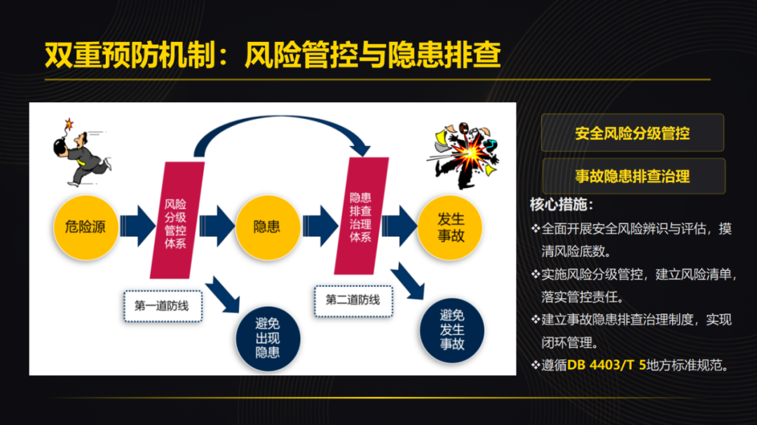 二是双重预防机制精准落地,筑牢安全屏障。严格衔接GB33000-2025《大中型企业安全生产标准化管理体系要求》中“安全风险管控、隐患排查治理、应急处置”三道防线理念,引入LEC、LS等专业风险辨识评估工具,建立“红橙黄蓝”四色风险分布图和隐患排查清单,实现风险分级管控、隐患闭环治理。通过标准化流程,精准管控高风险区域和关键设施设备,运用数字化手段实现全程留痕,做到风险可预警、过程可追溯、隐患全清零,真正把安全风险消灭在萌芽状态,践行国标“事前预防”的核心导向。