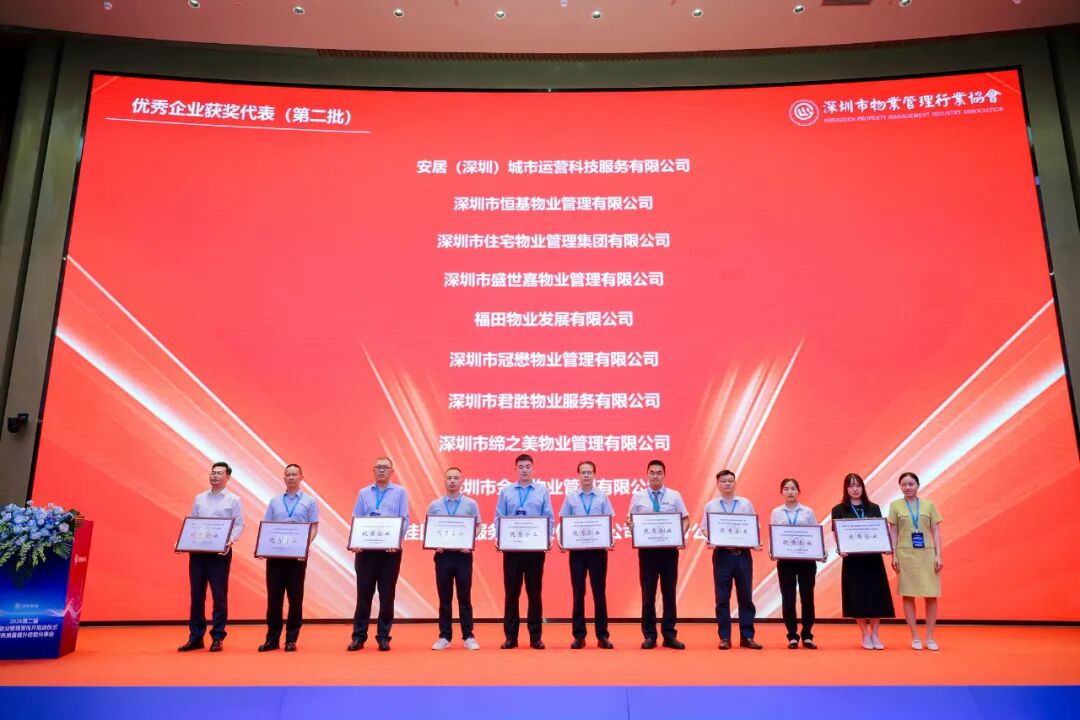 物业好伙伴获奖代表合影会上,还颁发了深圳市物业管理行业协会2026年度优秀企业、项目服务典范奖、优秀供应商、物业好伙伴等奖项。