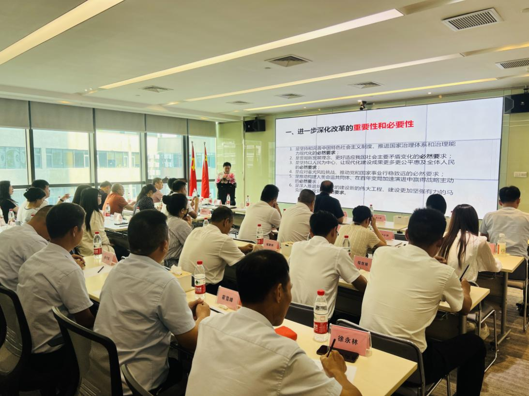 为学习宣传贯彻党的二十届三中全会精神,推动全会精神深入人心、落地见效,促进物业行业高质量发展,9月27日,市物业管理行业党委举行第二期“党课沙龙”活动,专题学习宣传党的二十届三中全会精神。市物业管理行业党委副书记(主持工作)陈耀忠、专职副书记刘双乐分别从理论和实践层面对党的二十届三中全会精神进行宣讲。市物业管理行业党委直属党组织书记、党员代表共50多人参加会议。市党建组织员主持党课活动。 专题党课上,陈耀忠从进一步全面深化改革的重要性和必要性、进一步全面深化改革的指导思想、进一步全面深化改革的总目标、进一步全面深化改革的原则等方面进行了全面阐释,就进一步全面深化改革的主题、重大原则、重大举措、根本保证进行详细讲解。他表示,中国共产党坚持以人民为中心的发展思想,改革为了人民、改革依靠人民、改革成果由人民共享,进一步全面深化改革必将为物业管理的改革发展注入强劲动力,推动物业行业更高质量发展,并强调物业行业党员干部和从业人员要做改革发展的开拓者、奉献者、实干家。 刘双乐从进一步全面深化改革的任务书、路线图、时间表等实践层面进行解读,促进大家更多了解全面深化改革带来的实效与成果,并指出到2029年党的二十届三中全会提出的改革任务完成时,中国将实现惠及全体人民更高水平的现代化。