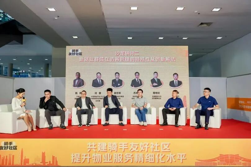 在第二个研讨环节中,万科、中海、金地、保利、龙湖及美置服务就“新就业群体在访客管理中的特殊性及创新解法”分享了各自的做法和创新举措。除了为骑手提供通行便利外,各物业企业还依托小区门岗建设骑手驿站,为骑手提供休息、饮水、手机充电等服务,并设立24小时远程指路热线、规划专用停车区,解决骑手找楼难、停车难等问题。