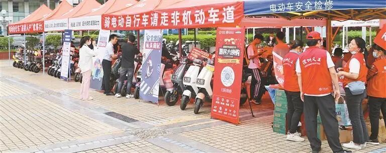 深圳电动自行车保有量约500万辆,相关部门加强安全宣传,志愿者深入卖场科普电动自行车安全使用知识。