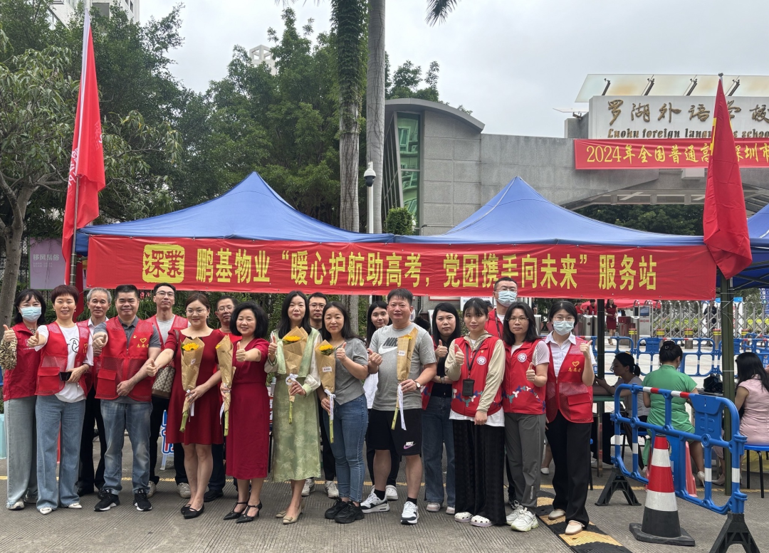 6月7日上午,鹏基管理党总支组织党员到罗湖外国语学校门口开展为期三天的“暖心护航助高考,党团携手向未来”助力高考志愿服务。本次志愿服务设有高考能量补给站,为考生、家长及现场秩序维护工作人员准备了药品、文具、驱蚊水等,并为考生送上向日葵,预祝他们旗开得胜,一举夺魁!现场氛围热烈,考生家长们纷纷表示:物业的举动让他们很是暖心,也让孩子备受鼓舞,更加坚定了迎考的信心。