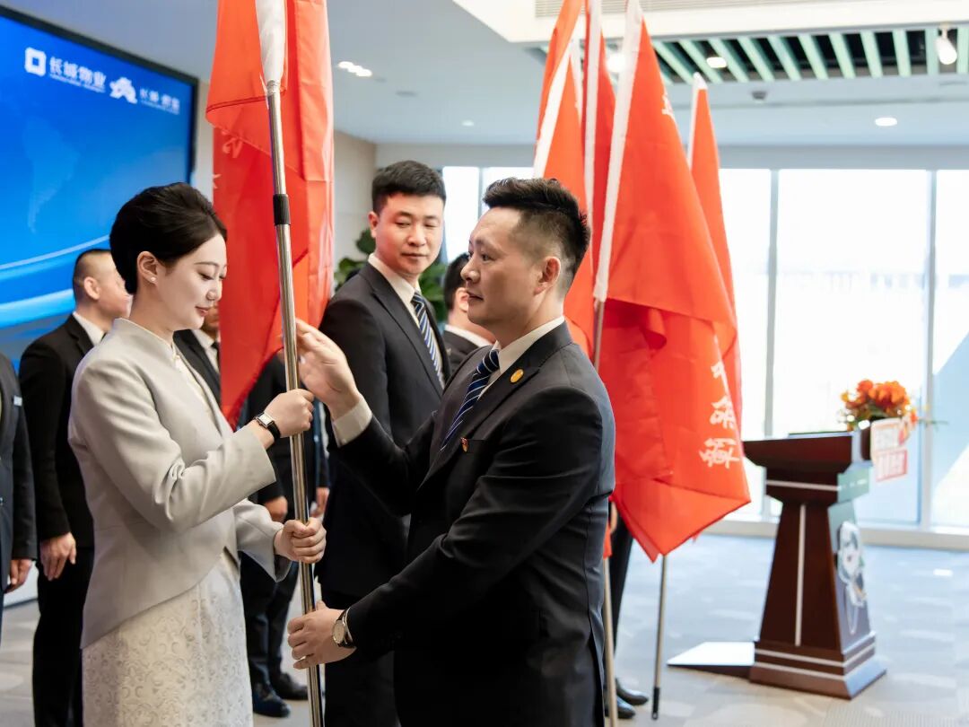 授旗仪式环节,蔡运桥亲自将一面面承载着期望与担当的旗帜,依次交付到进博服务的部门负责人手中。随着最后一面旗帜的交接完成,蔡运桥进行了总结性发言,整个现场的气氛愈发凝重而热切。所有人都仿佛能感受到一股强烈的使命感在空气中弥漫开来,这股使命感将大家紧紧地团结在一起,形成了一个坚不可摧的战斗集体。