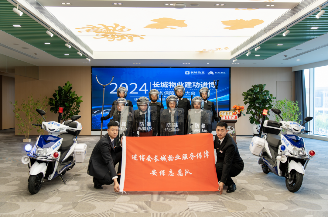 活动伊始,绿地虹桥世界中心上海睿商城区进博服务保障团队负责人蔡运桥发表了极具鼓舞性的动员讲话,他着重指出,过往六届进博会,长城物业进博保障服务团队积累了宝贵经验,期间涌现出众多优秀团队和个人,圆满完成历届保障任务。而此次举办的保障进博会誓师大会活动,其意义深远且重大,乃是深入响应习近平总书记关于进博会的关键指示精神,以及贯彻落实 “越办越好” 这一总体要求的有力举措。通过此次活动,不仅有助于进一步提升长城物业的品牌形象,更能够充分展现出物业服务企业所应肩负的社会责任与担当。