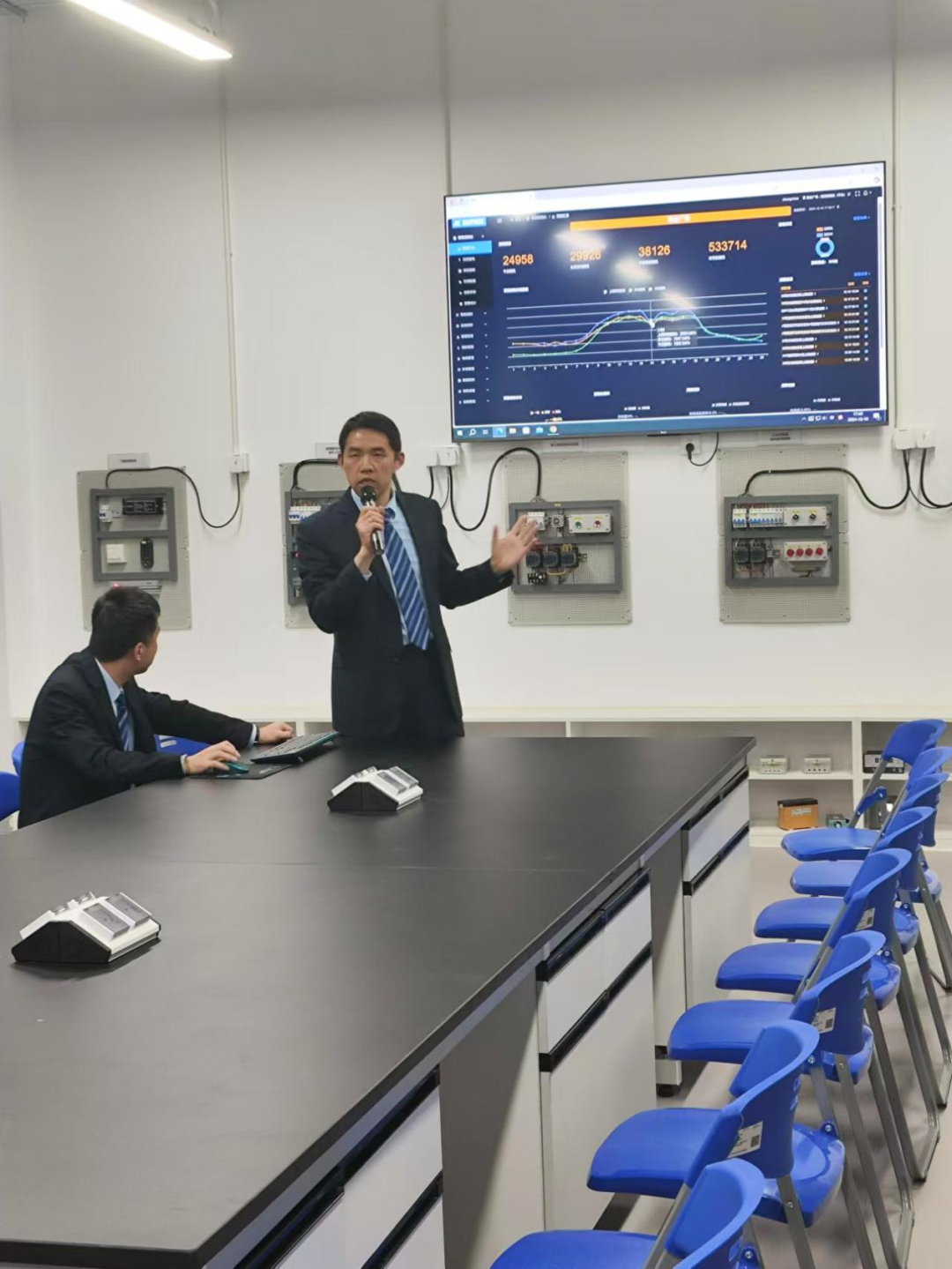作为特邀嘉宾,深圳市励科智慧楼宇科技有限公司总经理范鹏举带领与会嘉宾参观了全国物业管理数智化教学实训基地。范总详细介绍了励科易控平台的功能及其在楼宇数智化管理中的实际应用,并通过案例演示,展现了平台如何利用物联网与云计算技术,实现对楼宇设施设备的实时监测、智能控制和能耗优化,大幅提升管理效率的同时有效降低运维成本。范总特别强调,实操培训对于物业数智化转型至关重要,并结合丰富的行业经验,分享了未来物业管理的六大关键词:提质、增效、降本、绿色、安全、发展。他表示,全国物业管理数智化教学实训基地将持续致力于培养专业化人才,提升行业智慧楼宇建设能力,为企业项目的数智化转型与落地提供强有力的支持。