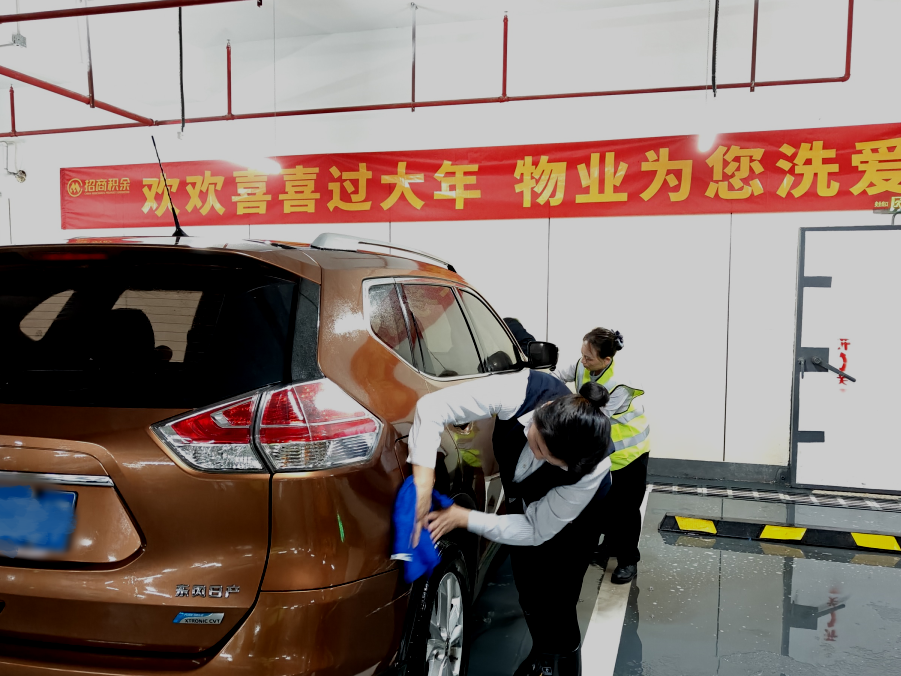 在会展湾东城广场项目,招商积余推出节前免费洗车惊喜服务,从冲洗车辆到擦干全方位服务,一辆辆“风尘仆仆”的车焕然一新,让不少业主大呼暖心。